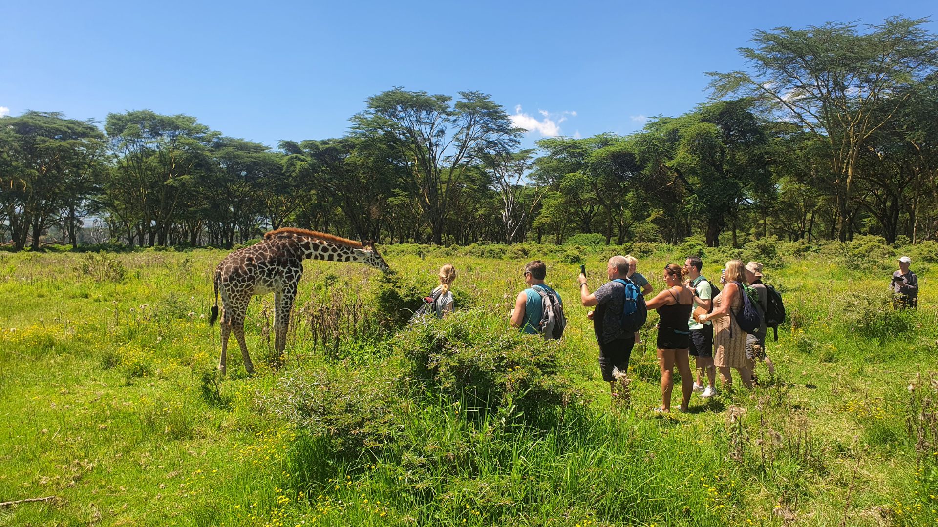 Odlet z Evropy, ranní přílet do Nairobi, cca dvouhodinový přesun na ubytování do města Naivasha. Na rozehřátí podnikneme lehčí výšlap na vrchol hory Kinjabi, odkud se nám naskytne parádní výhled na celou Keňu i sousední sopku Longonot, kterou budeme mít jako na dlani. V národním parku Lake Naivasha a sousední Sanctuary Farm pak již spatříme první divoká zvířata a užijeme si pěší safari kolem velkých stád zeber, pakoňů, vodušek a rodinky žiraf. Na jezeře samotném si užijeme vodní safari, kdy budeme jezdit na loďce kolem hrochů, pelikánů a obřích čápů marabou. Večer zde ochutnáme jednu z nejlepších Nyama Choma (grilovaná koza) v celé zemi a připijeme na úspěch naší výpravy.