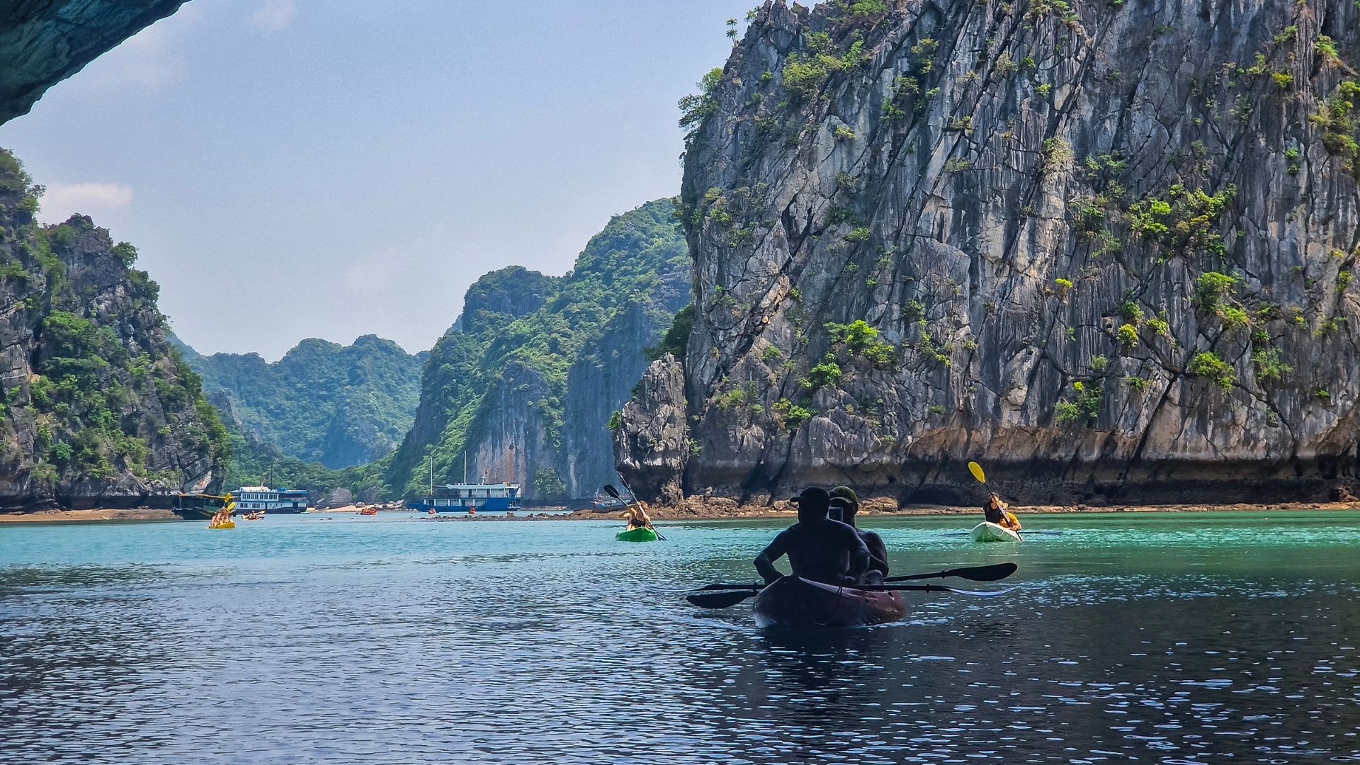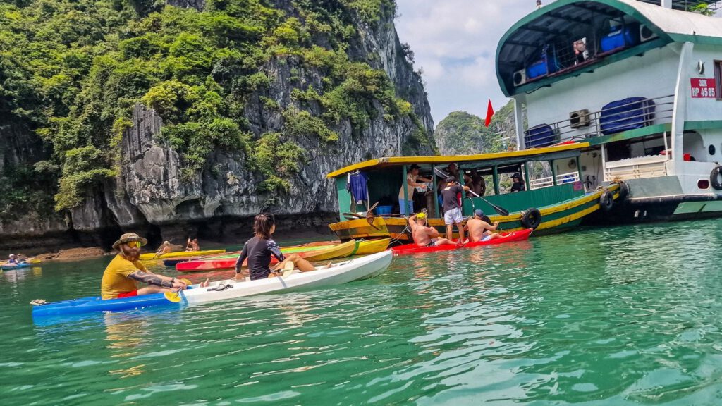 Kolem poledne se nalodíme na naši loď a dostaneme první chutný oběd na palubě, zatímco budeme vyplouvat na plavbu po zátoce. Během odpoledne nás čeká dobrodružství na sea kajacích, kdy proplujeme skrze klidné vody mezi vápencovými ostrovy a objevíme skryté jeskyně, které jsou přístupné jen z vody. Tento zážitek ti poskytne jedinečný pohled na krásu a klid této slavné zátoky.