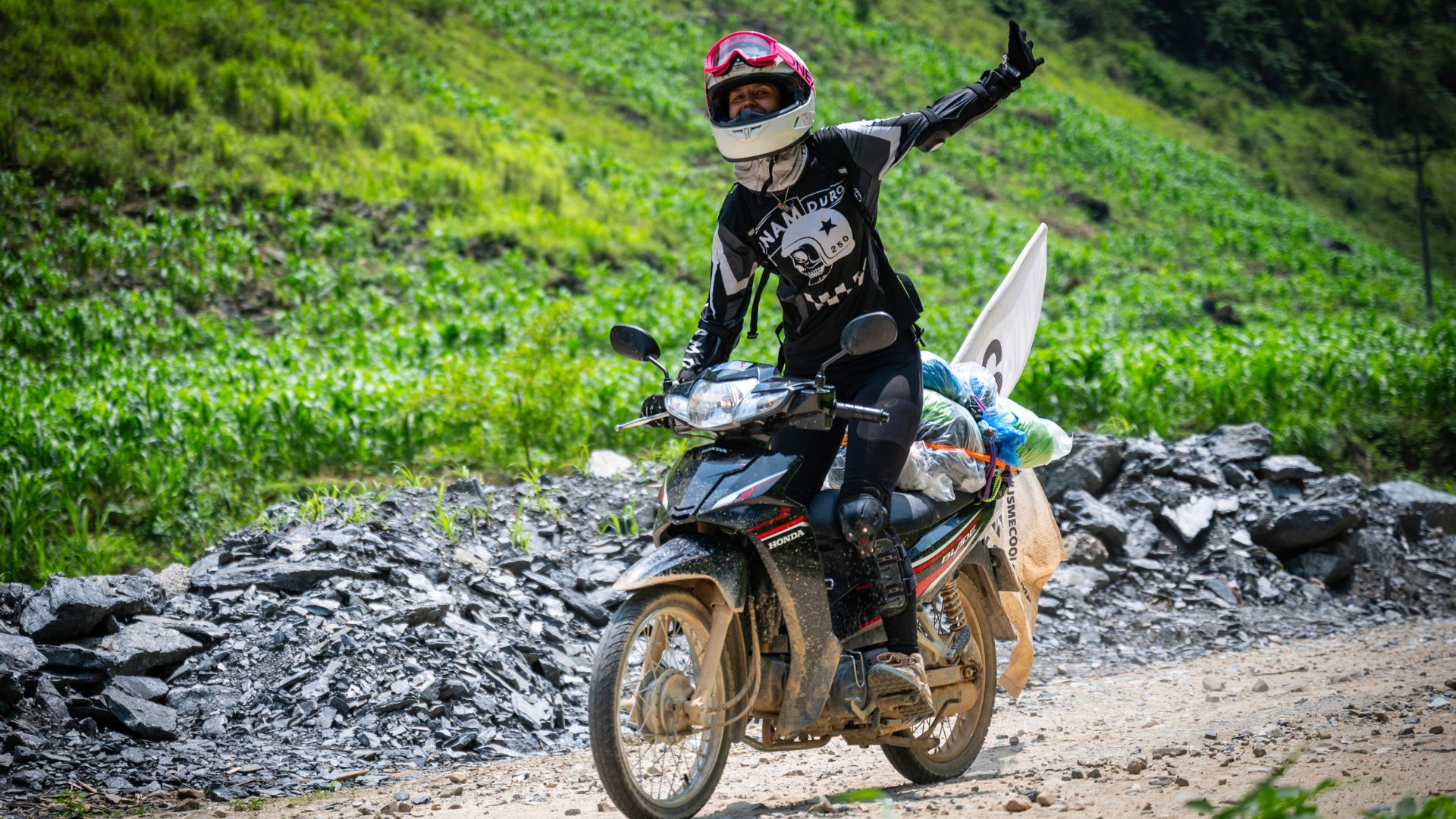 Dopoledne vyrážíme na dobrodružný moto okruh známý jako Ha Giang Loop. Během následujících 5 dnů tě čekají dechberoucí scenérie – majestátní vodopády, úchvatné vyhlídky, tajemné jeskyně a hlavně autentická vietnamská kultura. Budeme se prohánět po klikatících se cestách, které vedou mezi rýžovými a kukuřičnými poli, a objevovat severní Vietnam, jednu z nejméně dotčených oblastí západní civilizací.